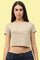 Women's Cotton Plain Round Neck Biscuit Color Crop Top