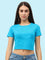 Women's Cotton Plain Round Neck Blue Color Crop Top