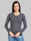 Women's Cotton Plain Round Neck Full Sleeve Charcoal Melange Color T-Shirt