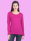 Women's Cotton Plain Round Neck Full Sleeve Magenta Color T-Shirt