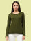 Women's Cotton Plain Round Neck Full Sleeve Olive Green Color T-Shirt
