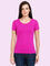 Women's Cotton Plain Round Neck Half Sleeve Magenta Color T-Shirt