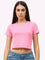 Women's Cotton Plain Round Neck Light Pink Color Crop Top