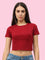 Women's Cotton Plain Round Neck Maroon Color Crop Top