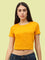 Women's Cotton Plain Round Neck Mustard Yellow Color Crop Top
