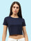 Women's Cotton Plain Round Neck Navy Blue Color Crop Top