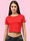 Women's Cotton Plain Round Neck Red Color Crop Top