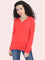 Women's Cotton Plain V Neck Full Sleeve Coral Red Color T-Shirt