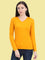 Women's Cotton Plain V Neck Full Sleeve Mustard Yellow Color T-Shirt
