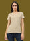 Women's Cotton Plain V Neck Half Sleeve Biscuit Color T-Shirt