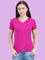 Women's Cotton Plain V Neck Half Sleeve Magenta Color T-Shirt