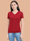 Women's Cotton Plain V Neck Half Sleeve Maroon Color T-Shirt
