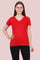 Women's Cotton Plain V Neck Half Sleeve Red Color T-Shirt