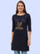 Women's Cotton Printed 3/4 Sleeve Navy Blue Color Long Top