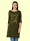 Women's Cotton Printed 3/4 Sleeve Olive Green Color Long Top