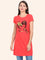 Women's Cotton Round Neck Printed Coral Red Color Long Top