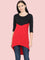 Women's Oval Shape Color Block BlackRed Color Long Top